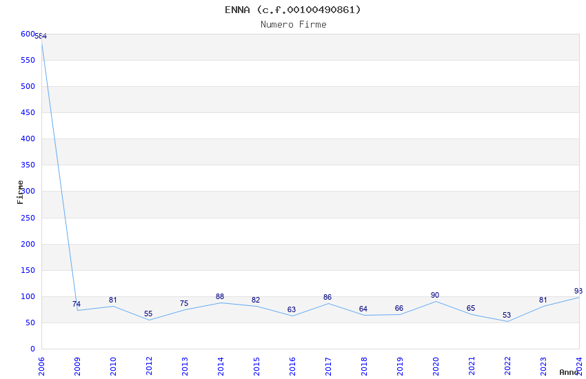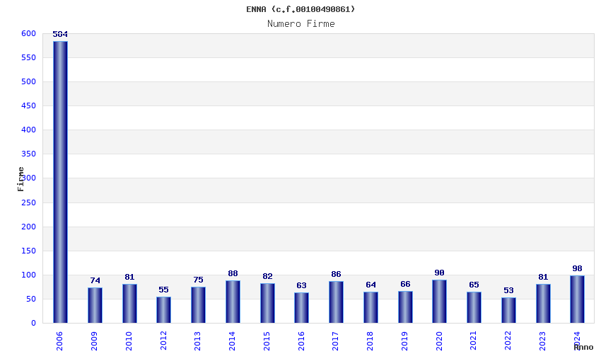 | Anno | Firme | Importi | Media | Naz. | Reg. | Prov. | Comu. |