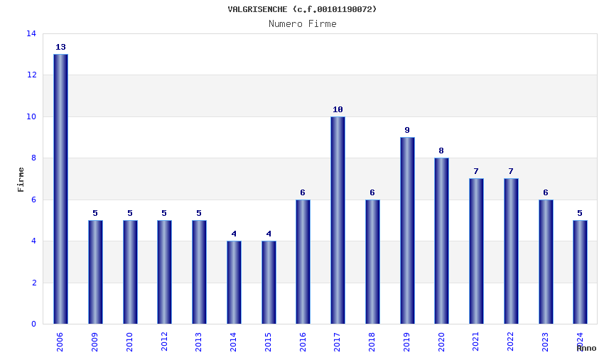 Anno Firme Importi Media Naz. Reg. Prov. Comu.