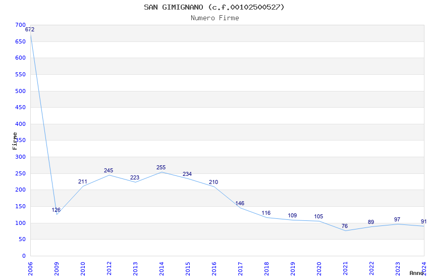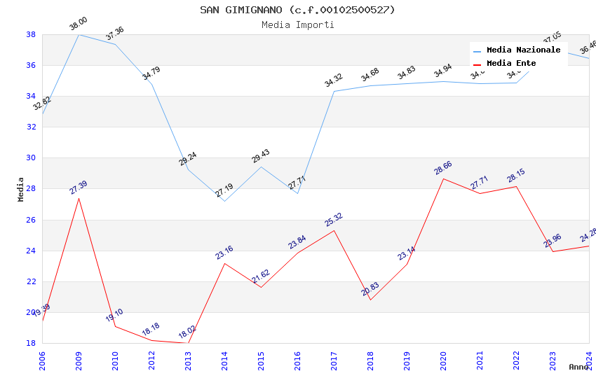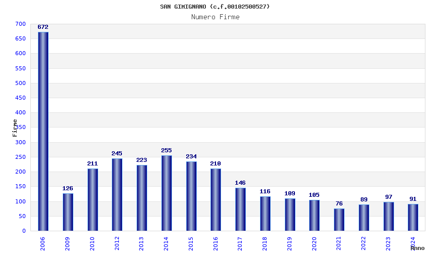 | Anno | Firme | Importi | Media | Naz. | Reg. | Prov. | Comu. |