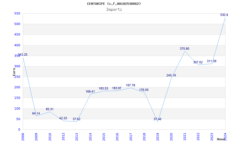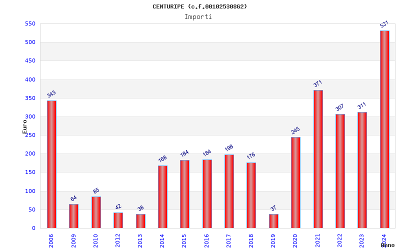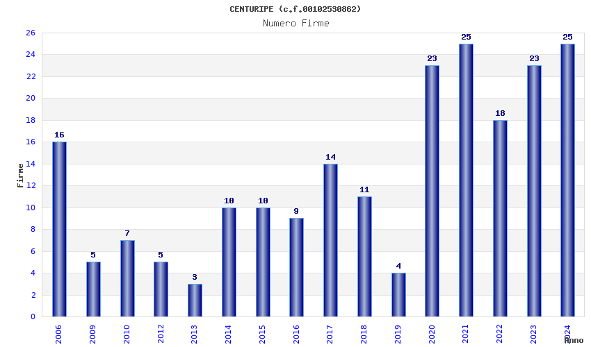 | Anno | Firme | Importi | Media | Naz. | Reg. | Prov. | Comu. |