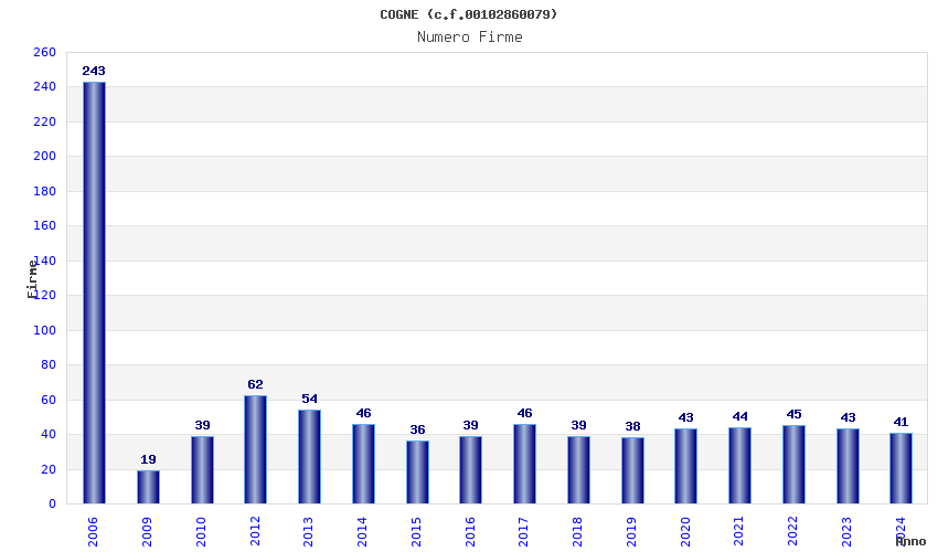 Anno Firme Importi Media Naz. Reg. Prov. Comu.
