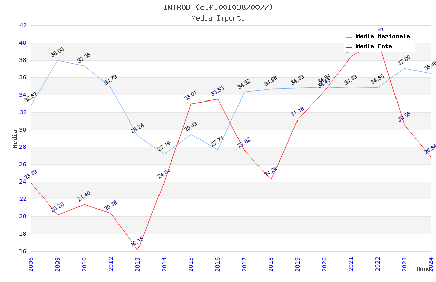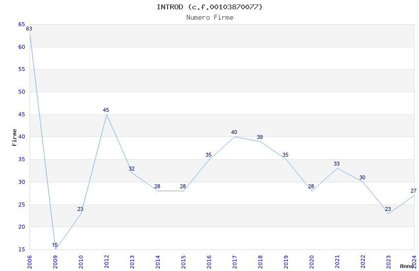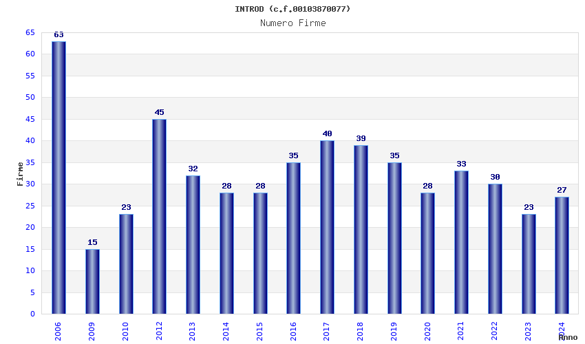 | Anno | Firme | Importi | Media | Naz. | Reg. | Prov. | Comu. |