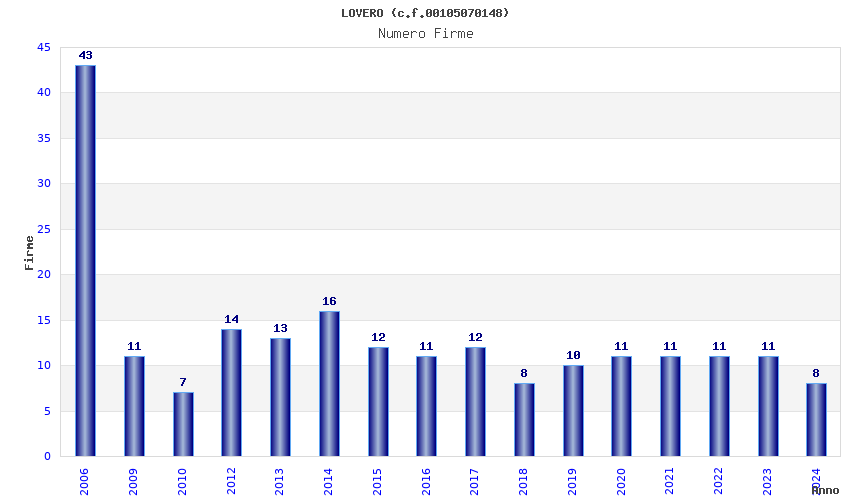 Anno Firme Importi Media Naz. Reg. Prov. Comu.