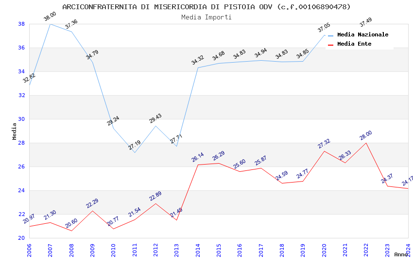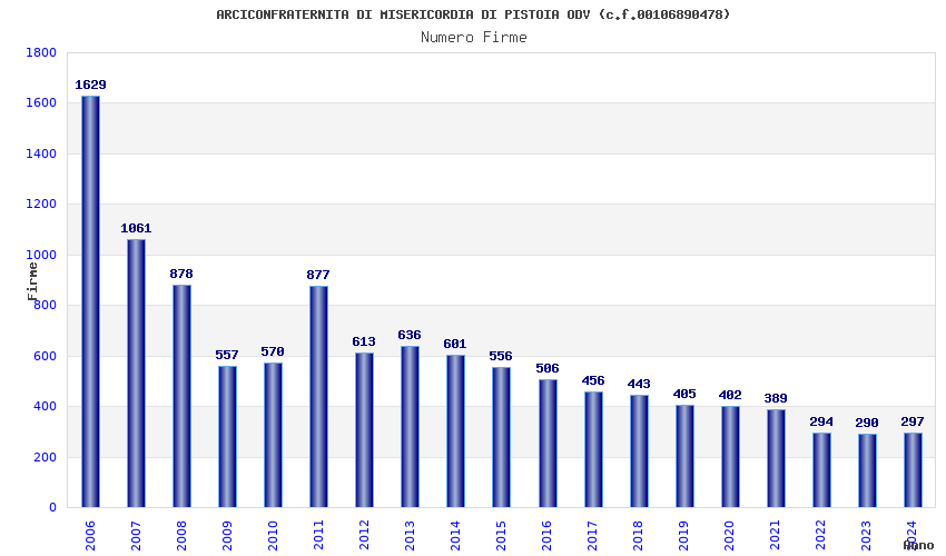 | Anno | Firme | Importi | Media | Naz. | Reg. | Prov. | Comu. |