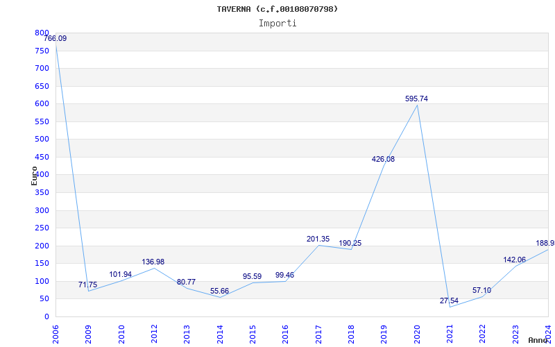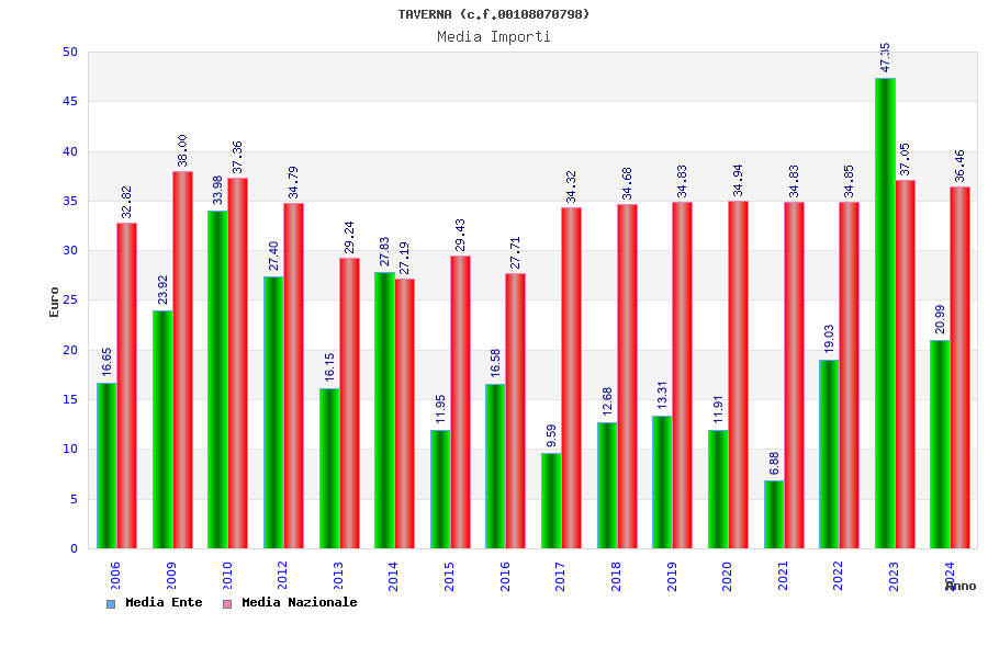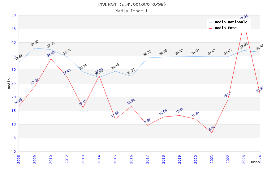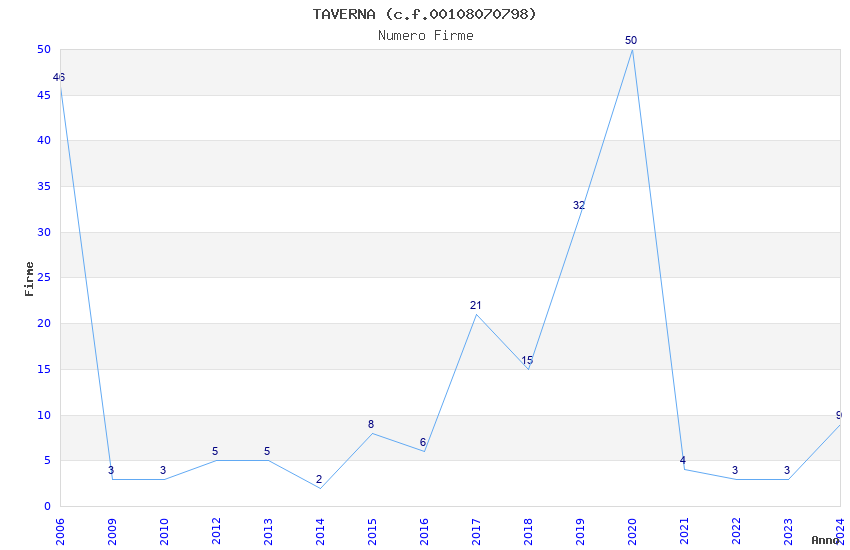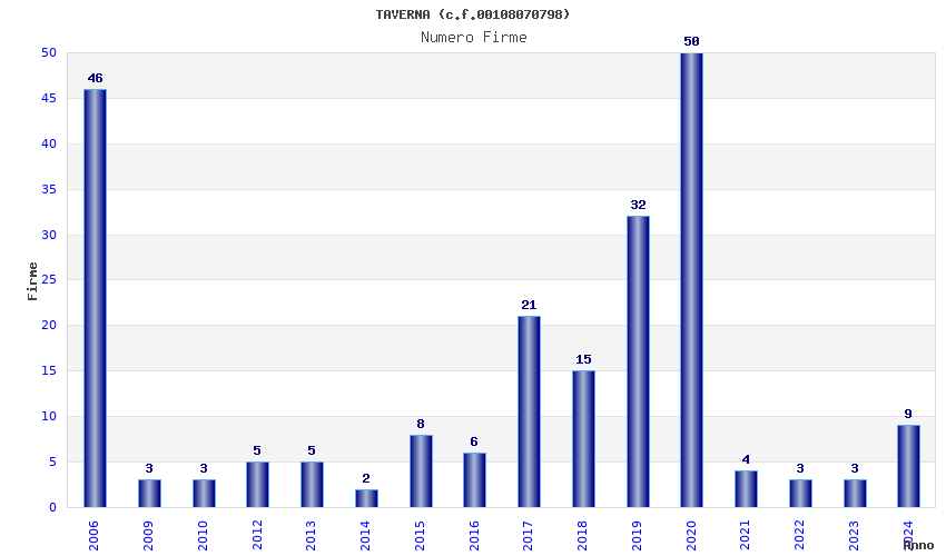 | Anno | Firme | Importi | Media | Naz. | Reg. | Prov. | Comu. |
