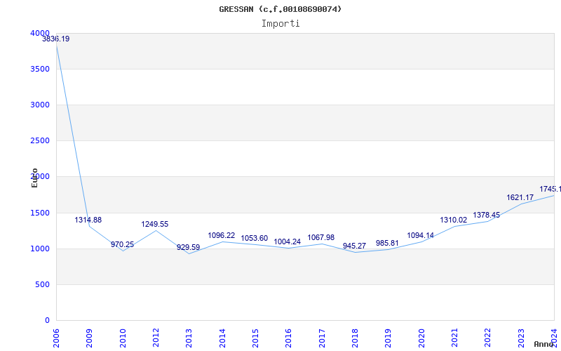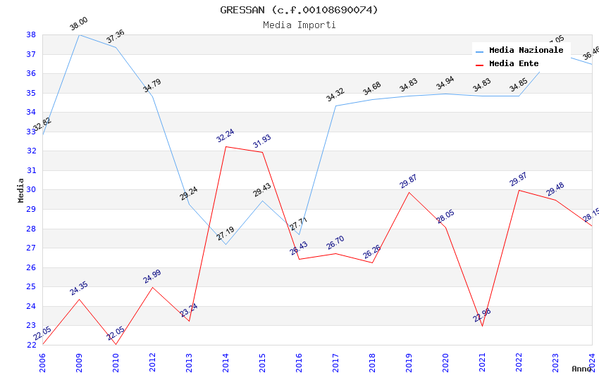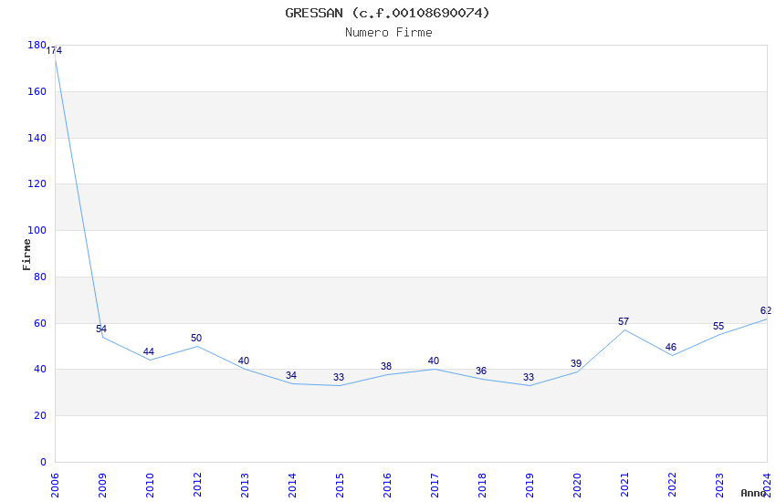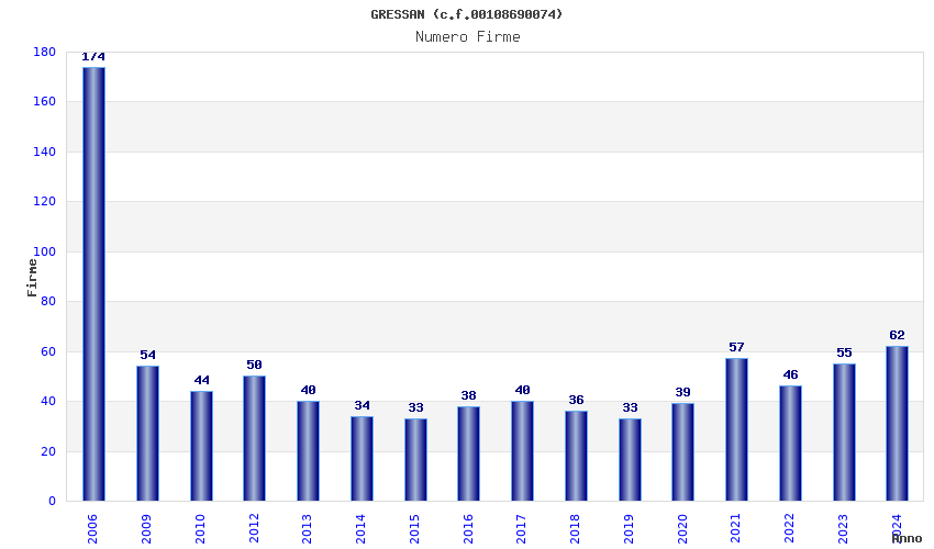 | Anno | Firme | Importi | Media | Naz. | Reg. | Prov. | Comu. |