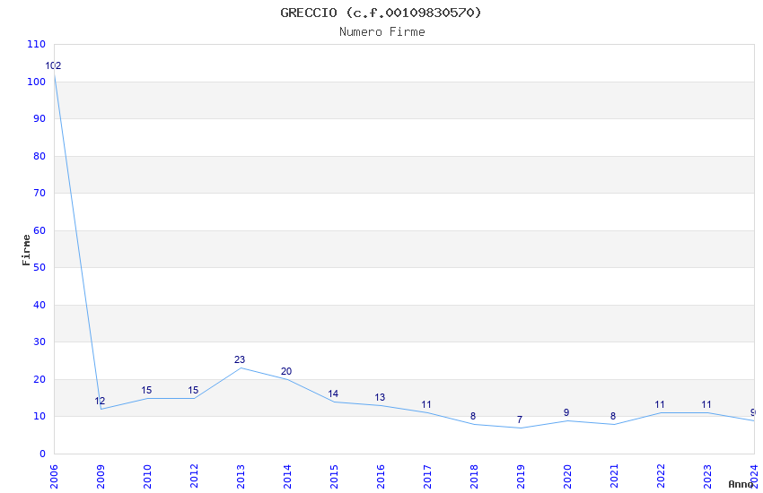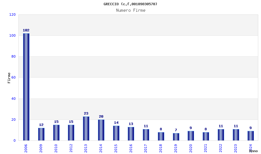 | Anno | Firme | Importi | Media | Naz. | Reg. | Prov. | Comu. |