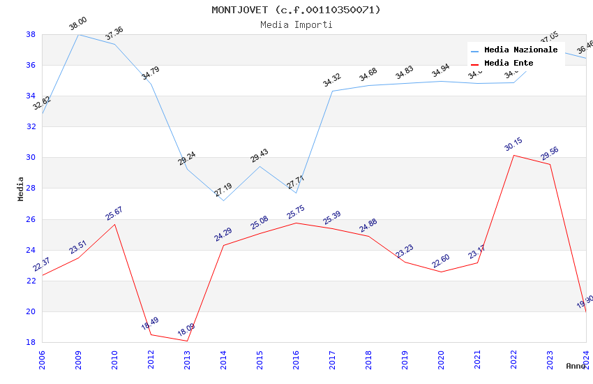 | Anno | Firme | Importi | Media | Naz. | Reg. | Prov. | Comu. |