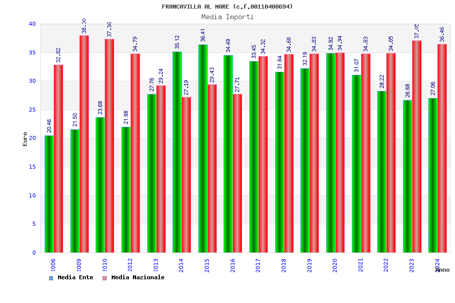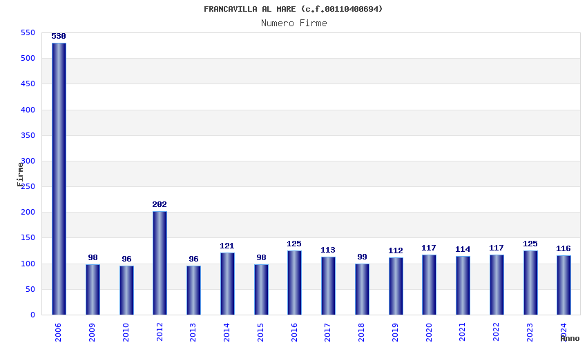 | Anno | Firme | Importi | Media | Naz. | Reg. | Prov. | Comu. |