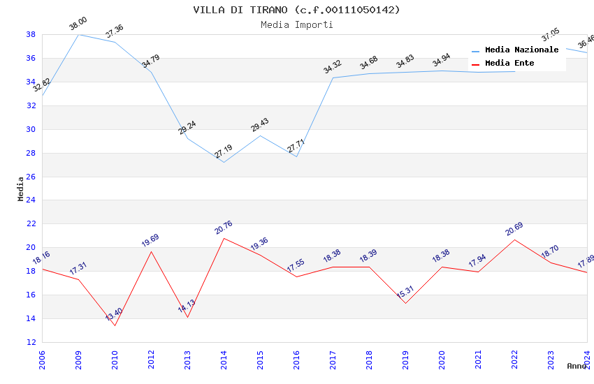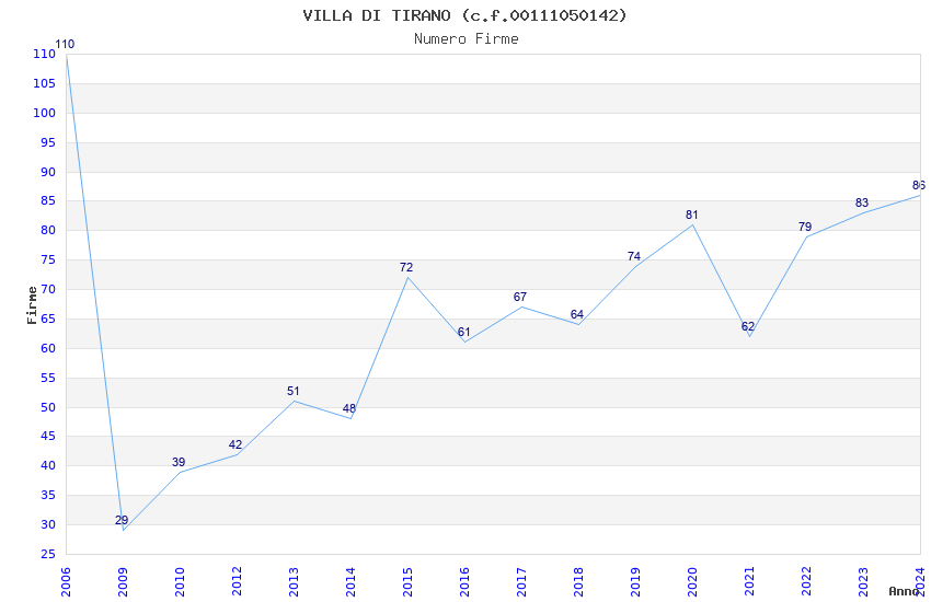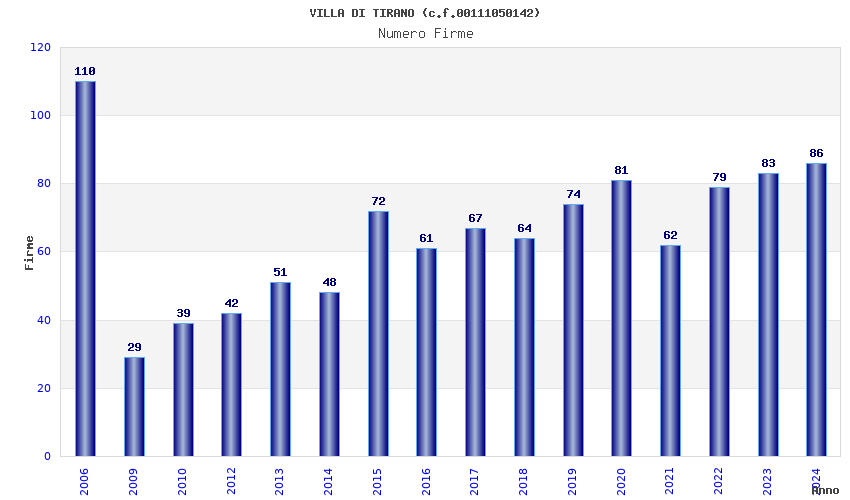 | Anno | Firme | Importi | Media | Naz. | Reg. | Prov. | Comu. |