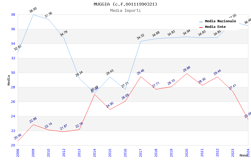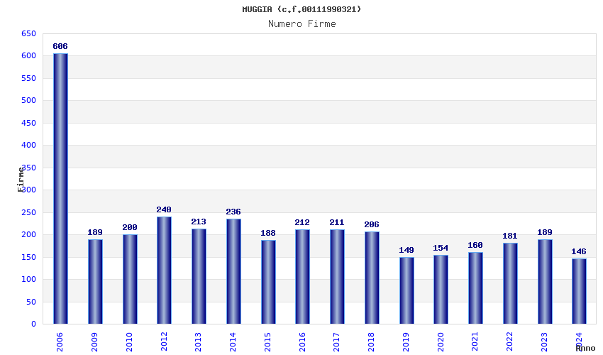 | Anno | Firme | Importi | Media | Naz. | Reg. | Prov. | Comu. |