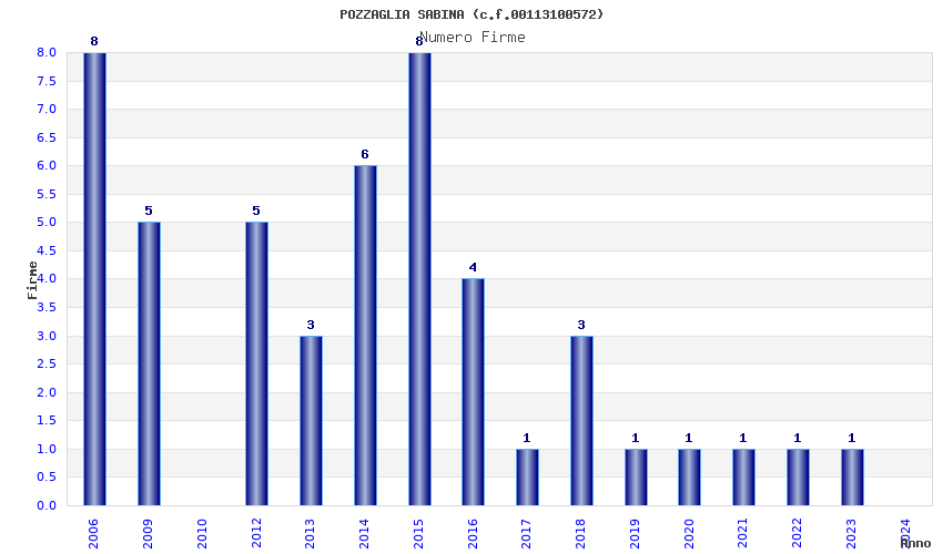 | Anno | Firme | Importi | Media | Naz. | Reg. | Prov. | Comu. |