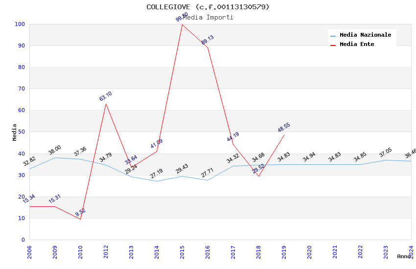 | Anno | Firme | Importi | Media | Naz. | Reg. | Prov. | Comu. |