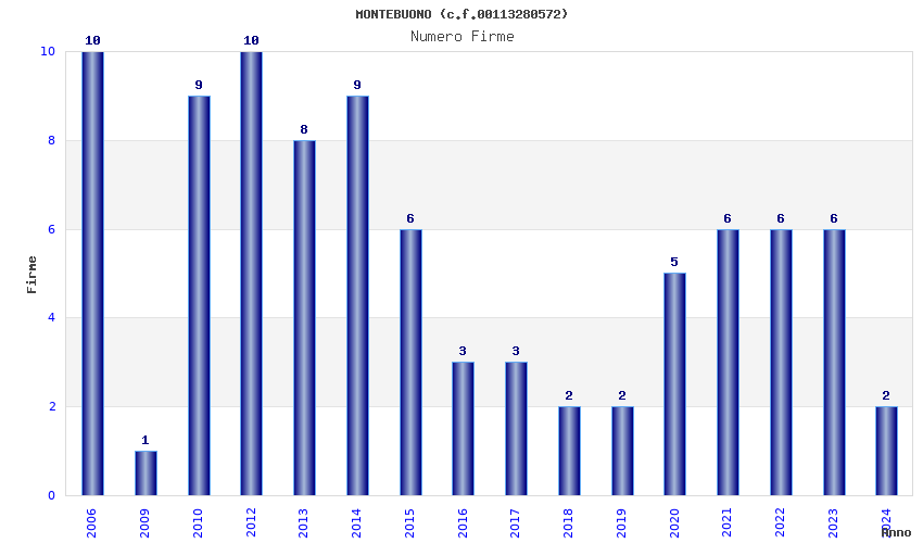 | Anno | Firme | Importi | Media | Naz. | Reg. | Prov. | Comu. |