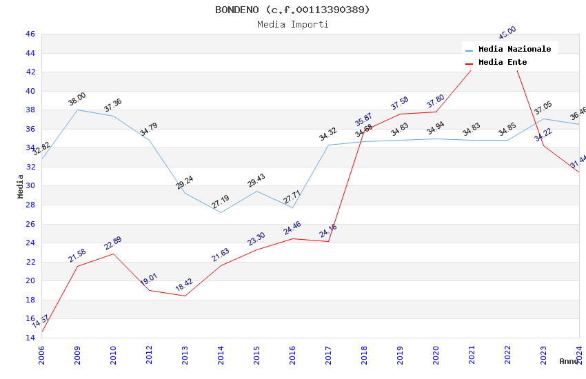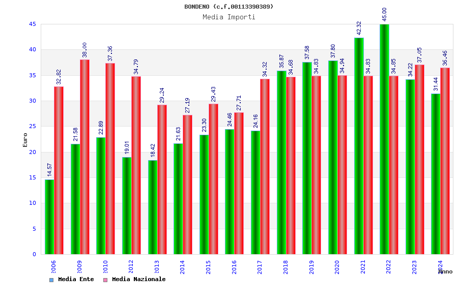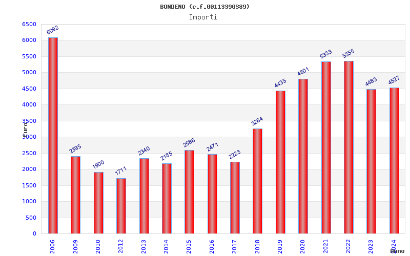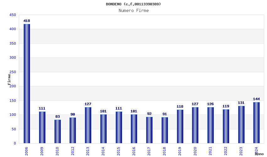 | Anno | Firme | Importi | Media | Naz. | Reg. | Prov. | Comu. |