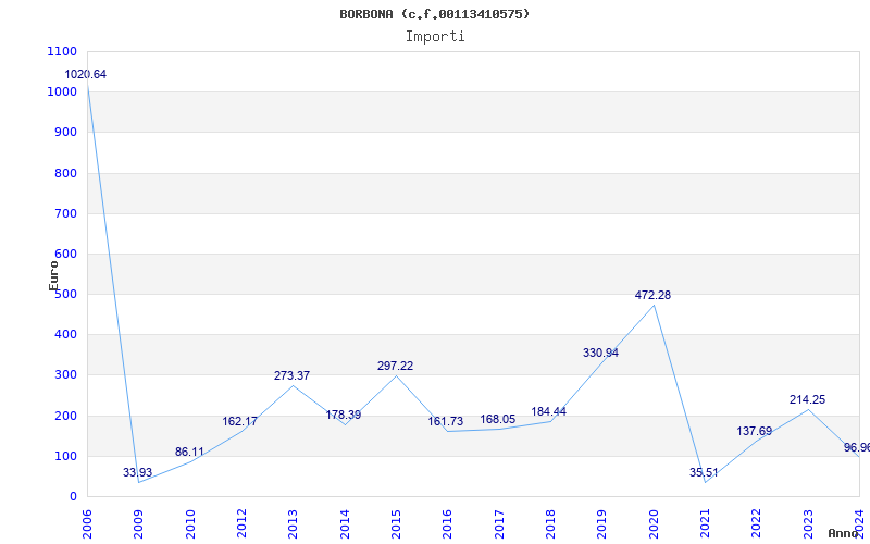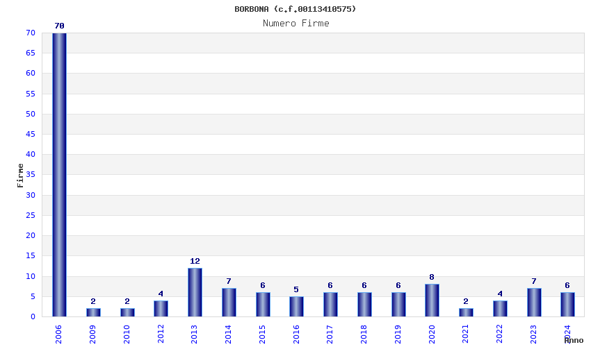| Anno | Firme | Importi | Media | Naz. | Reg. | Prov. | Comu. |