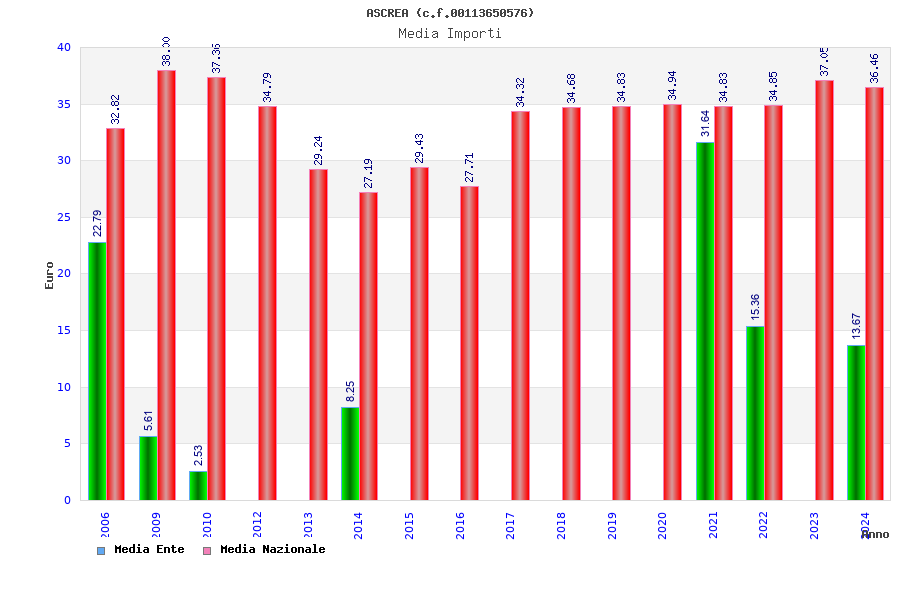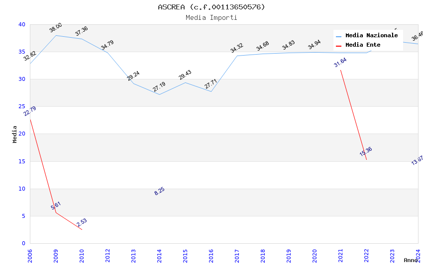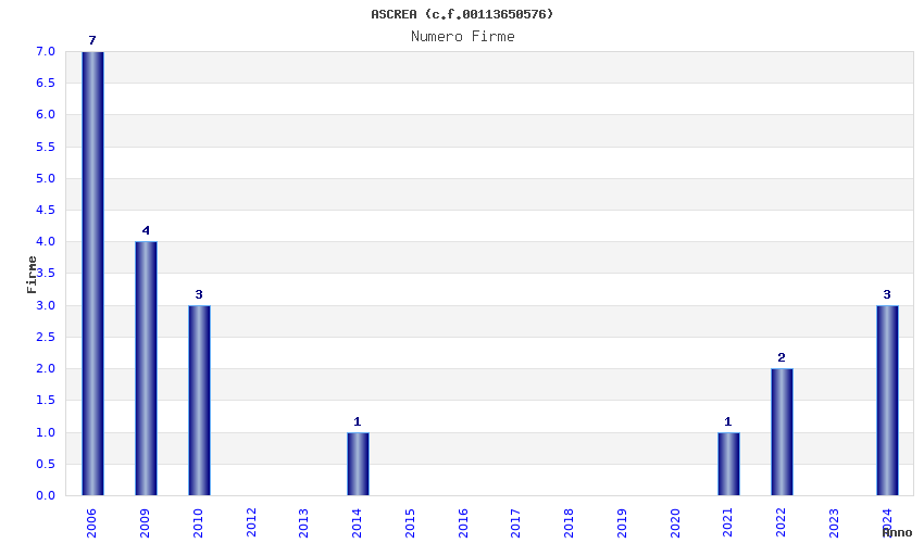 | Anno | Firme | Importi | Media | Naz. | Reg. | Prov. | Comu. |