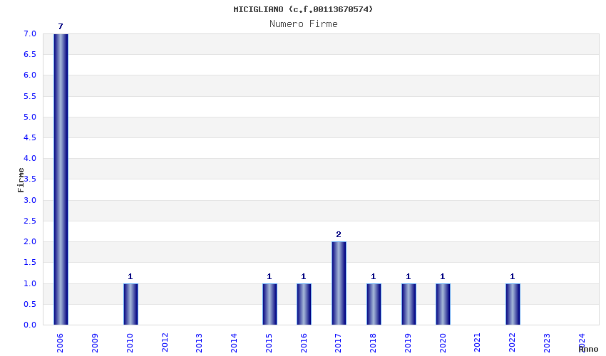 | Anno | Firme | Importi | Media | Naz. | Reg. | Prov. | Comu. |