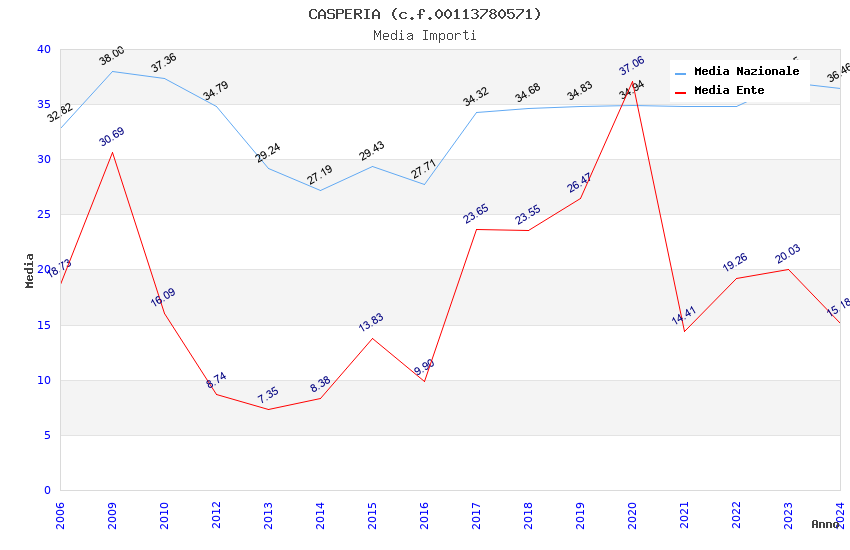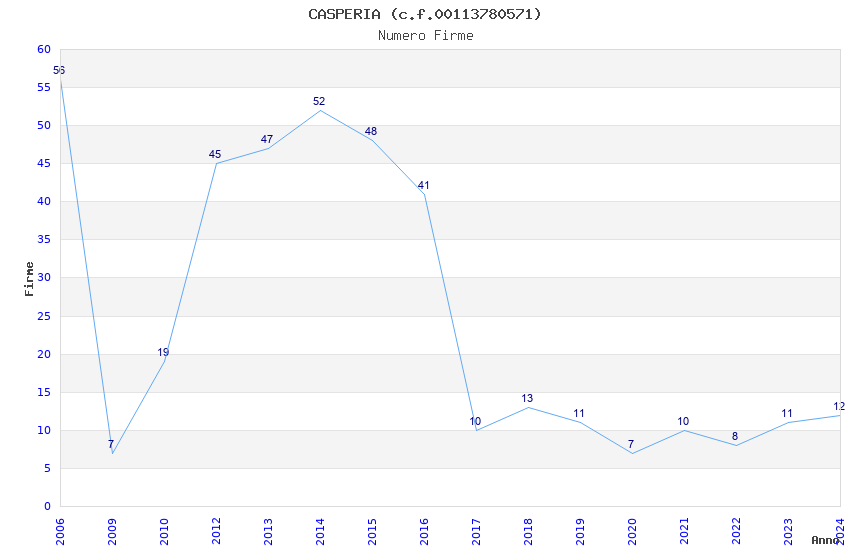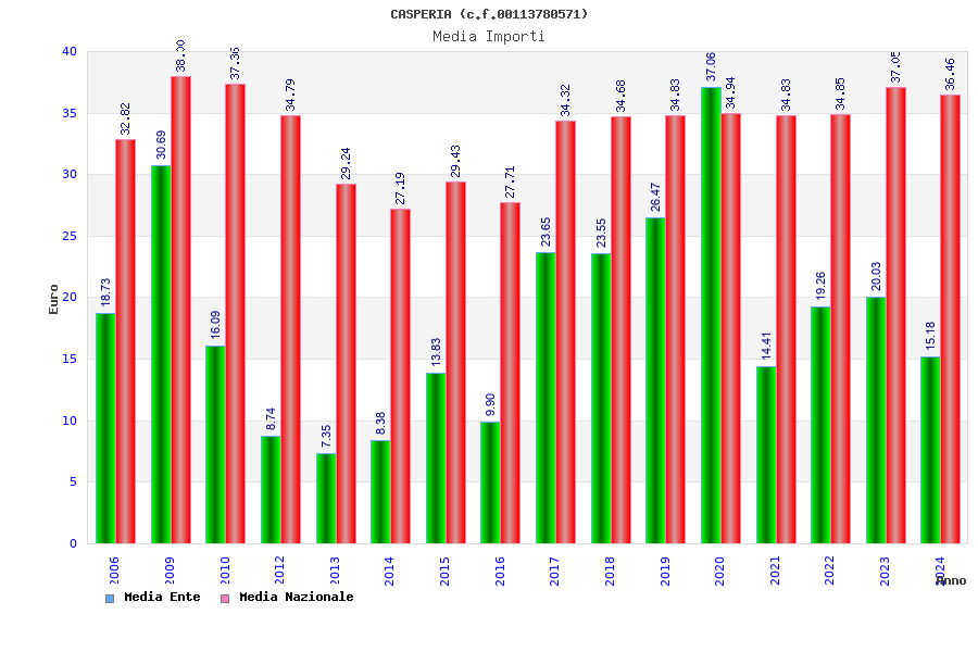 | Anno | Firme | Importi | Media | Naz. | Reg. | Prov. | Comu. |