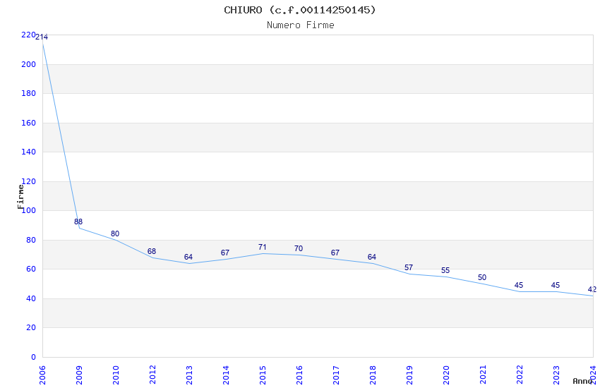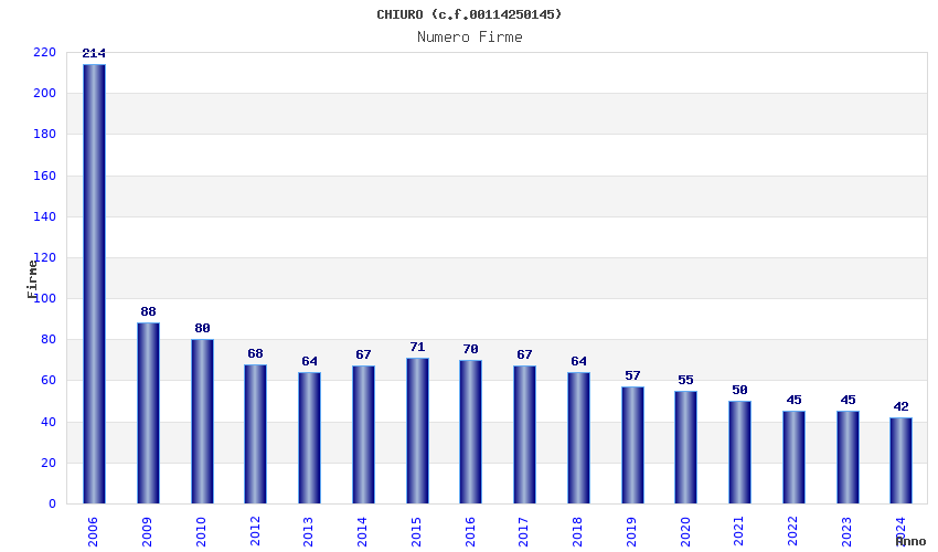 | Anno | Firme | Importi | Media | Naz. | Reg. | Prov. | Comu. |