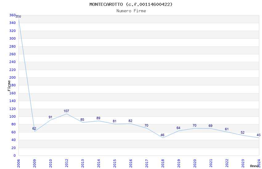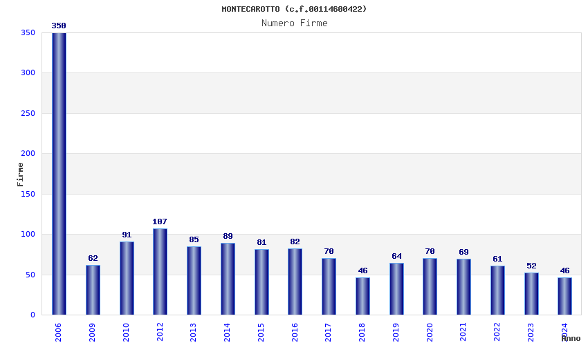 | Anno | Firme | Importi | Media | Naz. | Reg. | Prov. | Comu. |