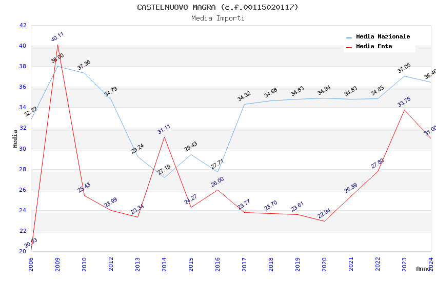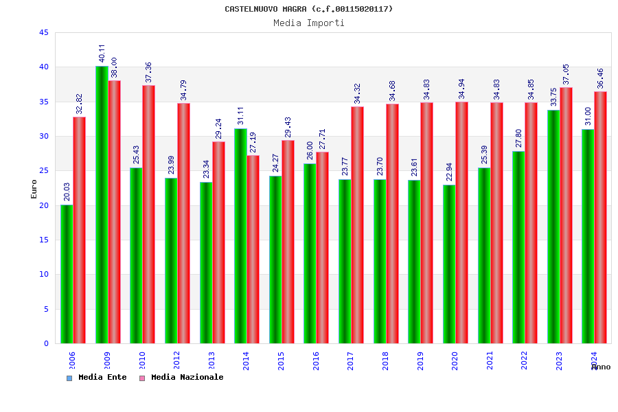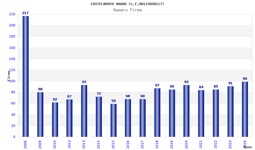| Anno | Firme | Importi | Media | Naz. | Reg. | Prov. | Comu. |