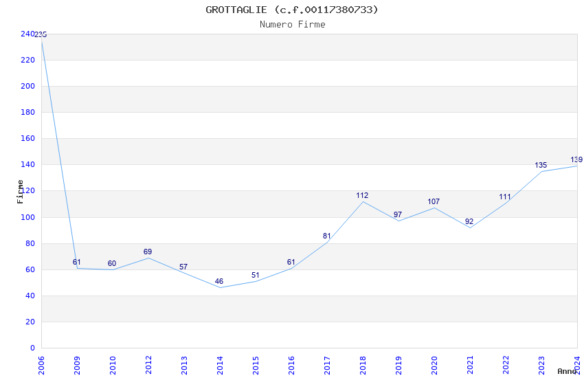 | 2023 | 135 | 3.581,80 | 26,53 | 14.896 | 764 | 97 | 6 |