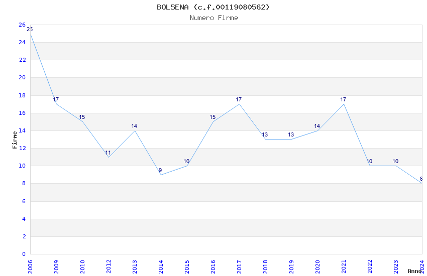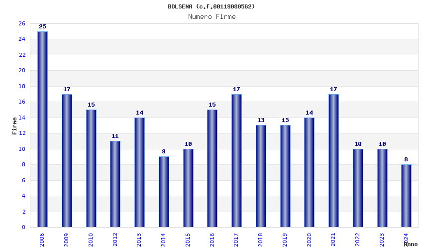 | Anno | Firme | Importi | Media | Naz. | Reg. | Prov. | Comu. |