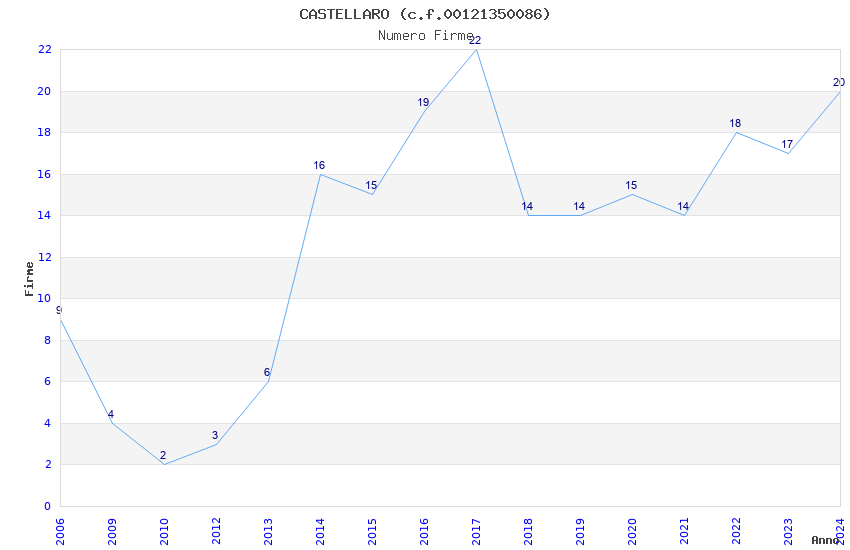 | 2017 | 22 | 401,68 | 18,26 | 46.473 | 1.312 | 154 | 1 |