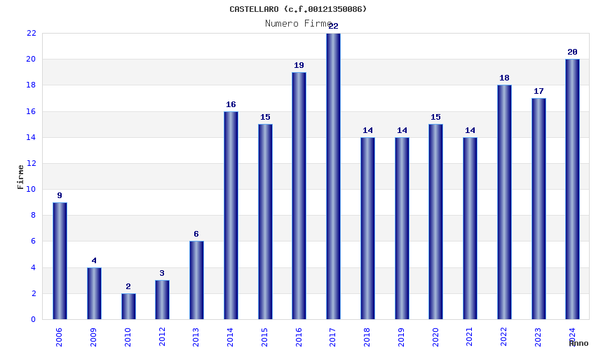 | Anno | Firme | Importi | Media | Naz. | Reg. | Prov. | Comu. |