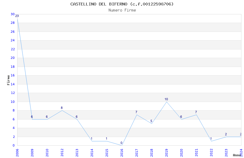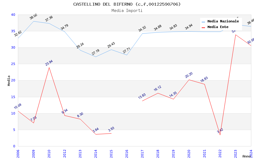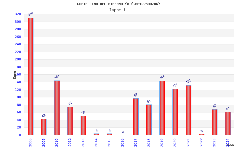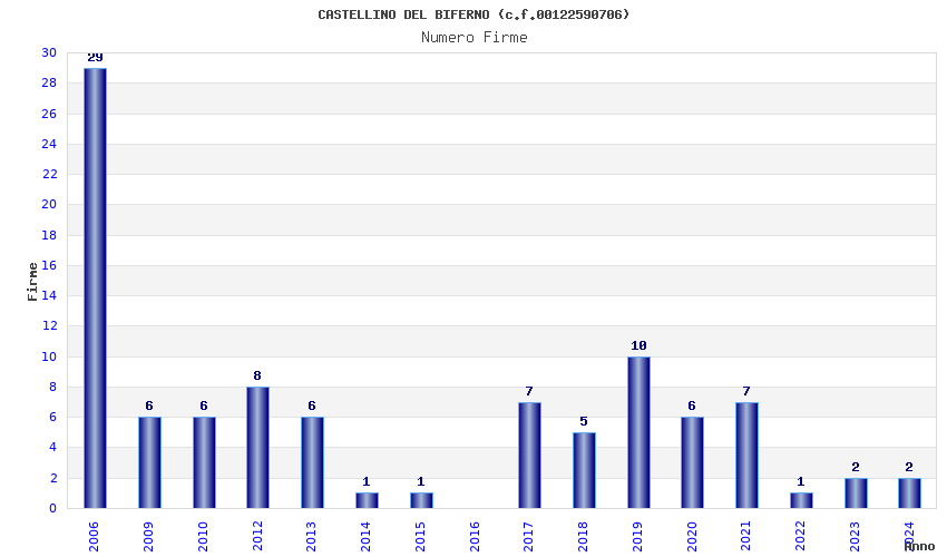 | Anno | Firme | Importi | Media | Naz. | Reg. | Prov. | Comu. |
