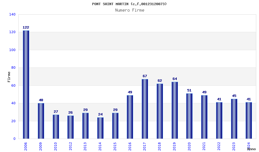 | Anno | Firme | Importi | Media | Naz. | Reg. | Prov. | Comu. |