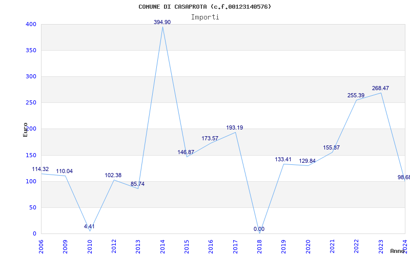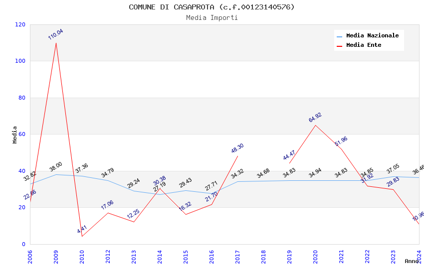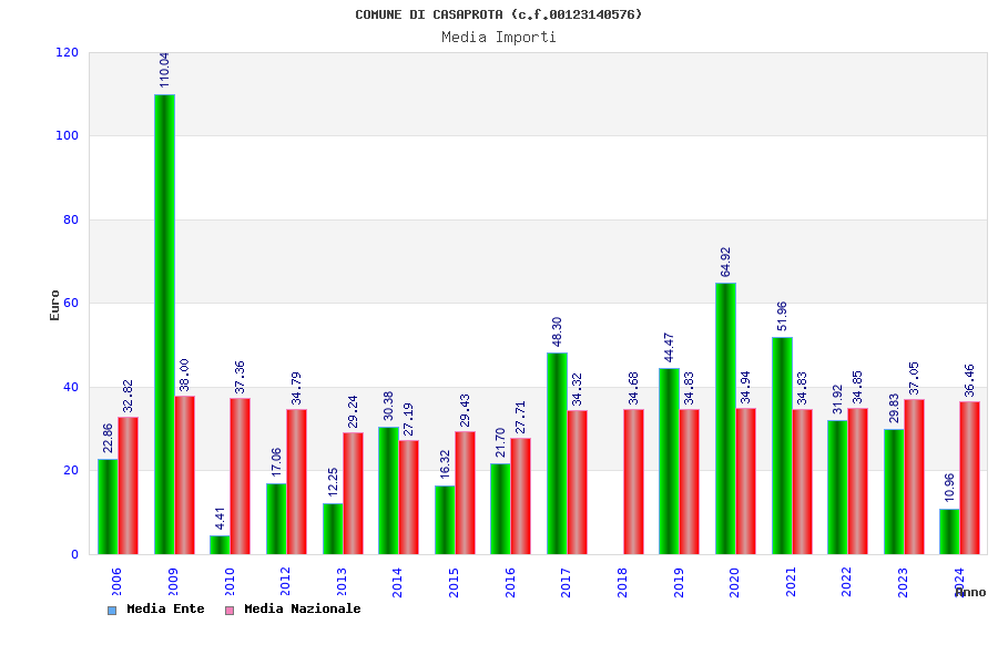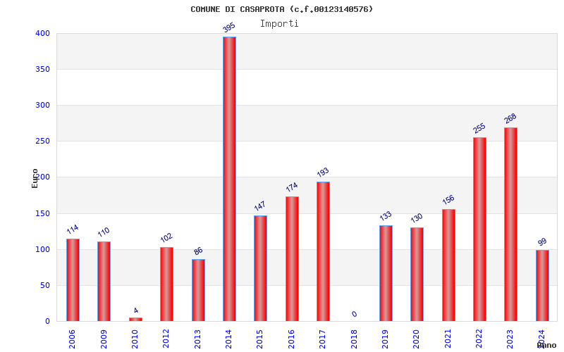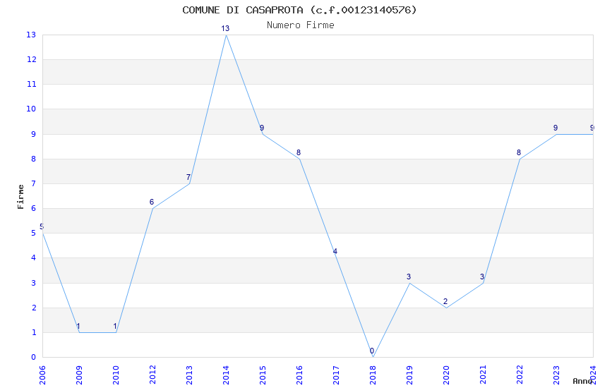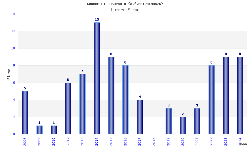 | Anno | Firme | Importi | Media | Naz. | Reg. | Prov. | Comu. |