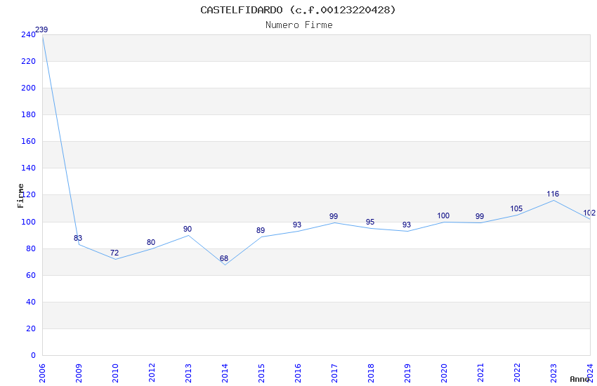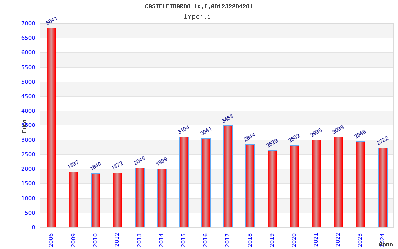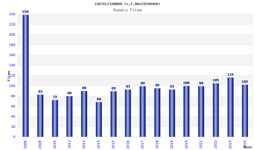 | Anno | Firme | Importi | Media | Naz. | Reg. | Prov. | Comu. |
