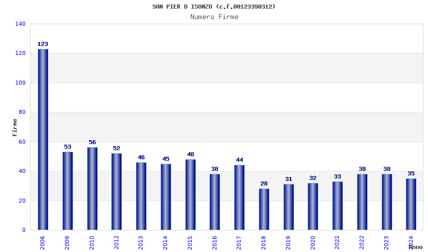| Anno | Firme | Importi | Media | Naz. | Reg. | Prov. | Comu. |