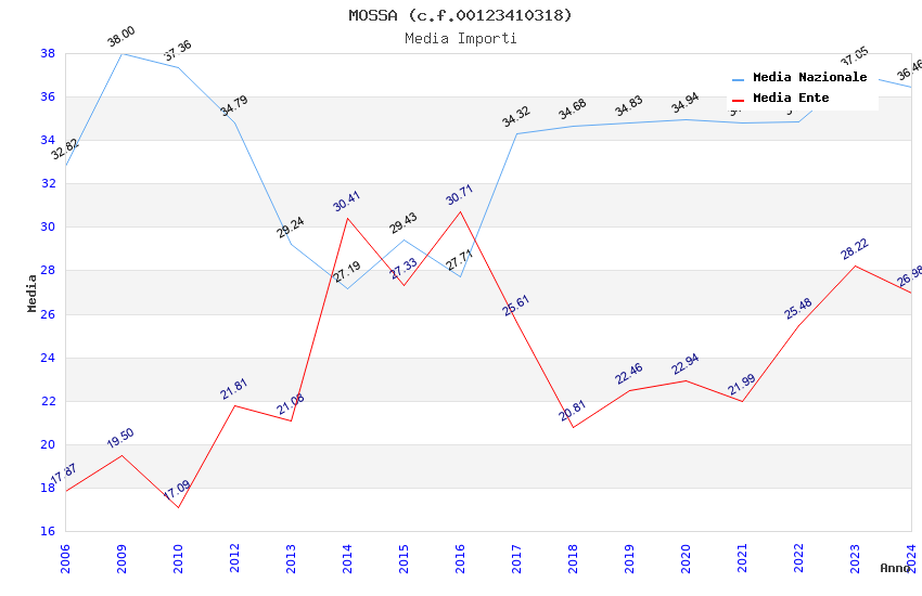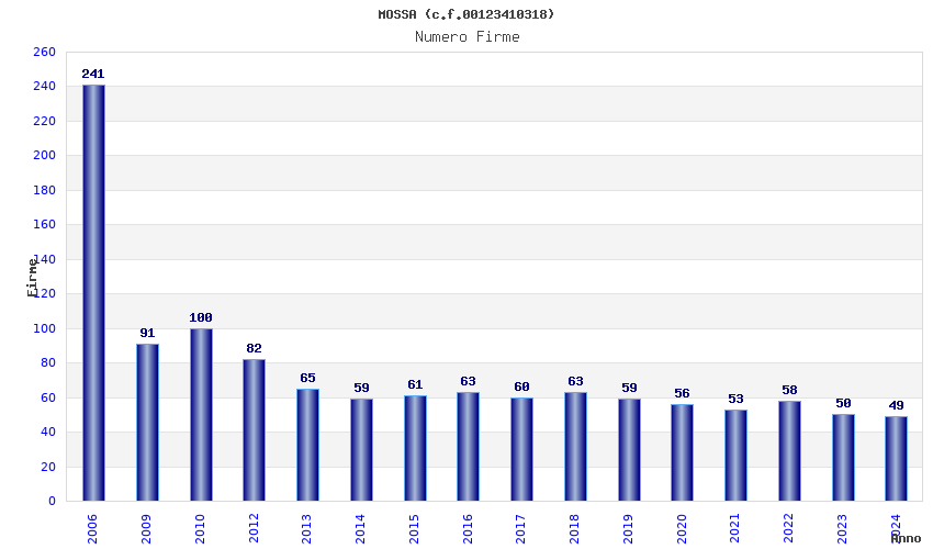| Anno | Firme | Importi | Media | Naz. | Reg. | Prov. | Comu. |