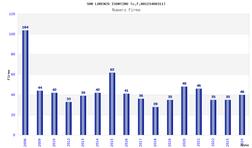| Anno | Firme | Importi | Media | Naz. | Reg. | Prov. | Comu. |