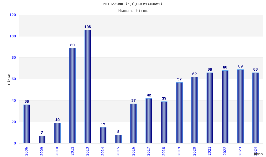 | Anno | Firme | Importi | Media | Naz. | Reg. | Prov. | Comu. |