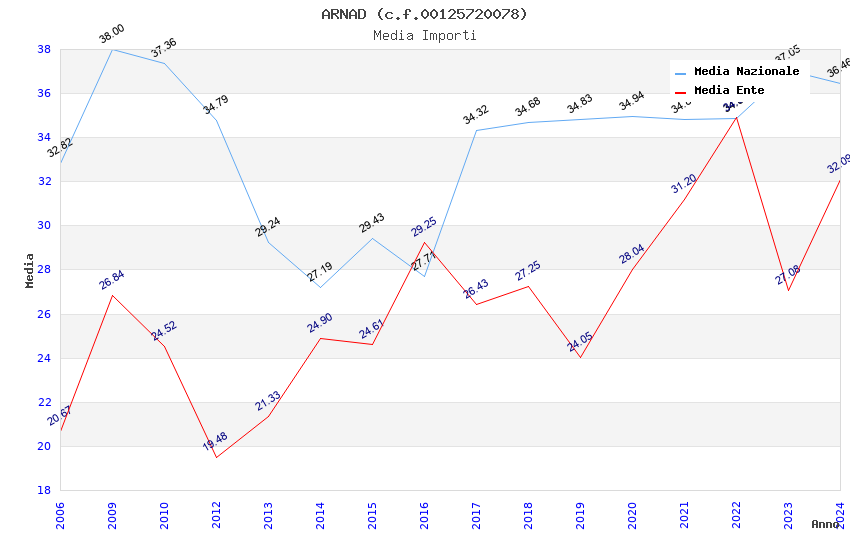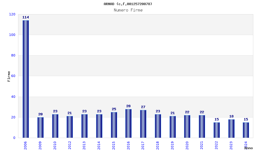 | Anno | Firme | Importi | Media | Naz. | Reg. | Prov. | Comu. |
