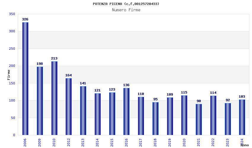 | Anno | Firme | Importi | Media | Naz. | Reg. | Prov. | Comu. |