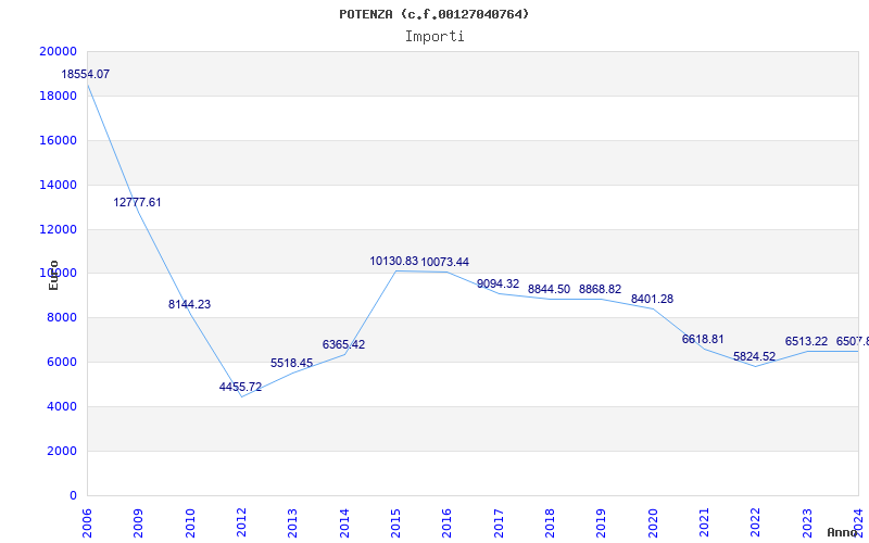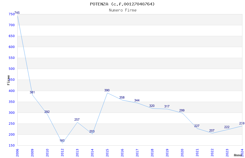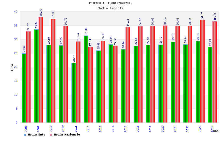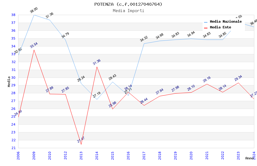 | Anno | Firme | Importi | Media | Naz. | Reg. | Prov. | Comu. |