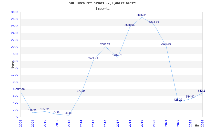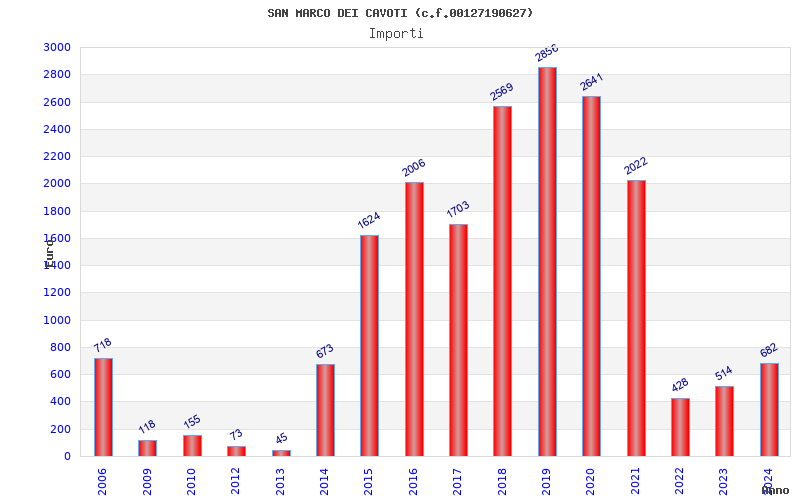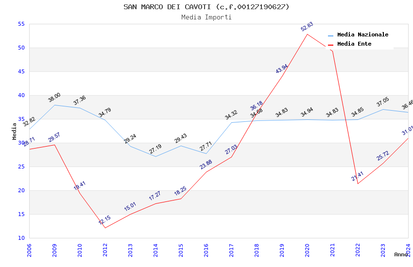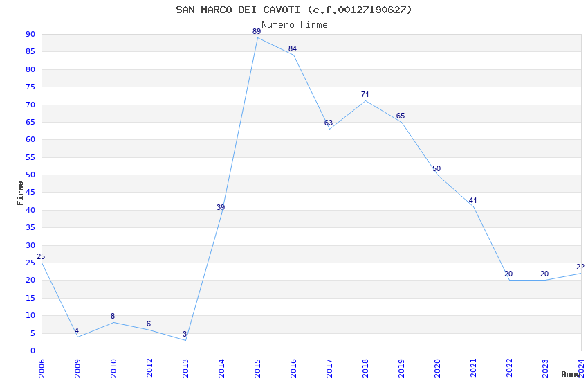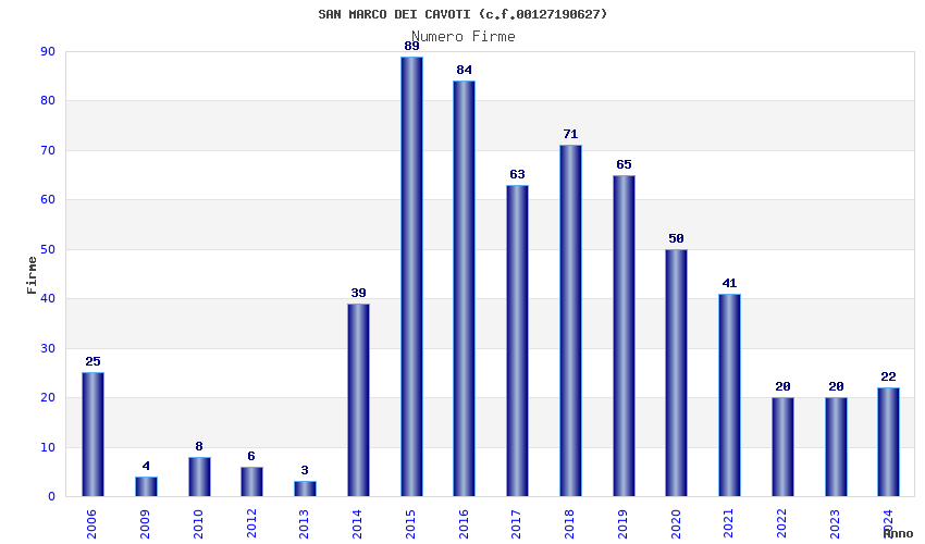 | Anno | Firme | Importi | Media | Naz. | Reg. | Prov. | Comu. |