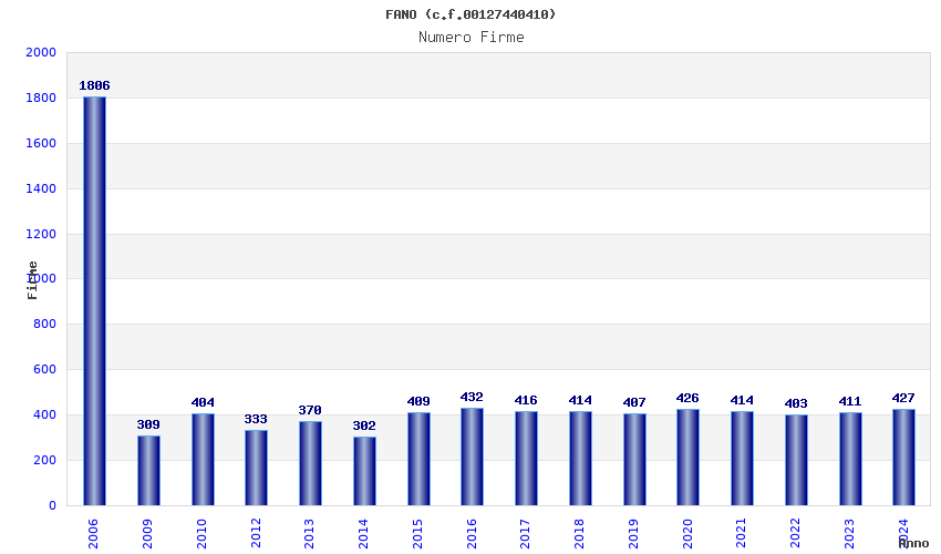 | Anno | Firme | Importi | Media | Naz. | Reg. | Prov. | Comu. |