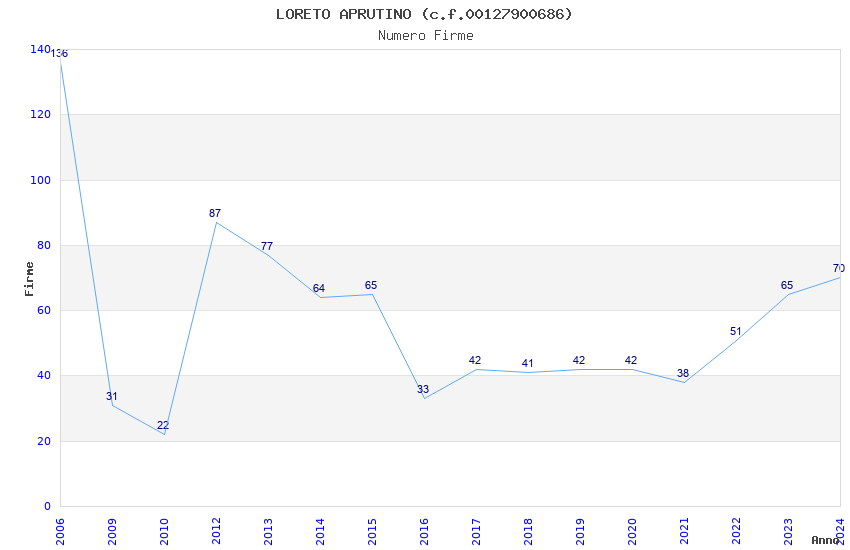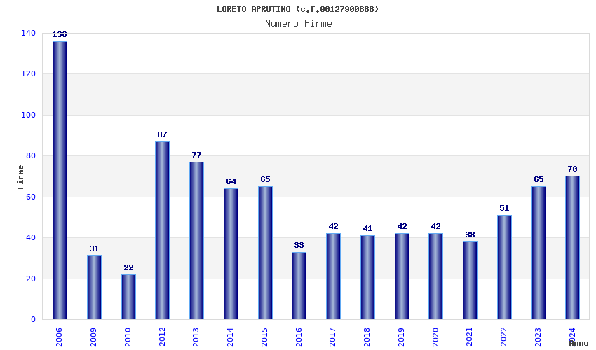 | Anno | Firme | Importi | Media | Naz. | Reg. | Prov. | Comu. |
