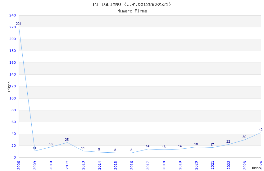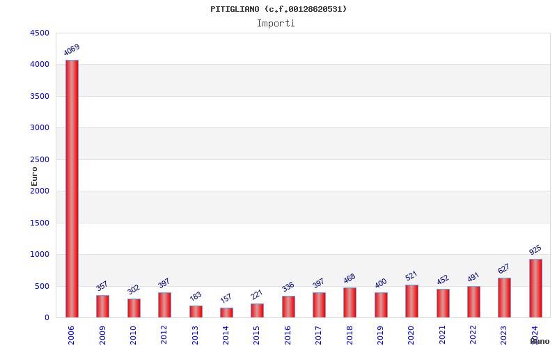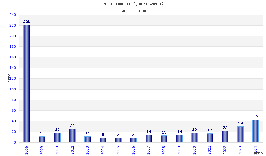 | Anno | Firme | Importi | Media | Naz. | Reg. | Prov. | Comu. |