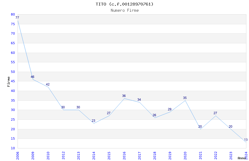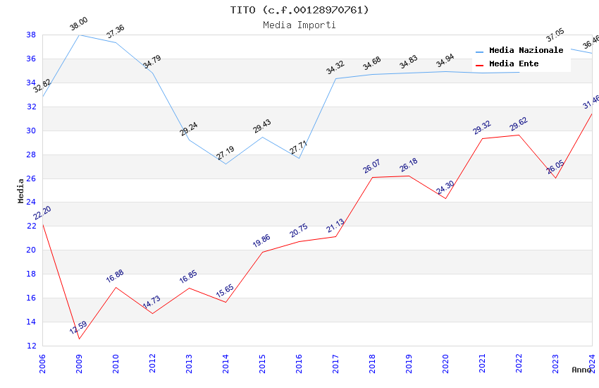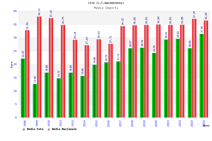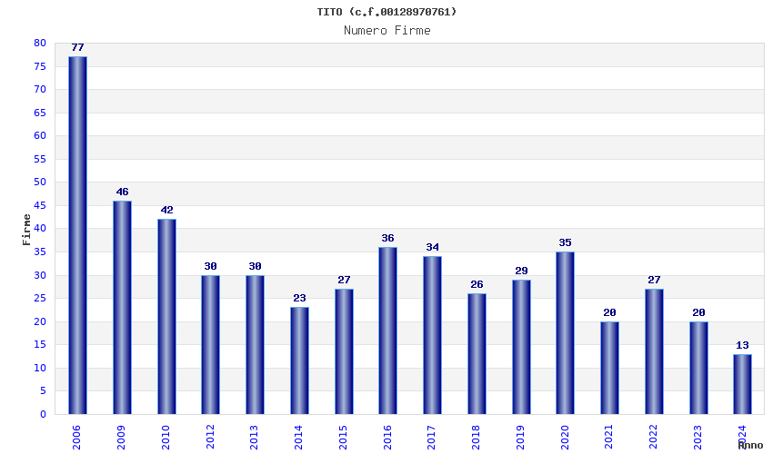 | Anno | Firme | Importi | Media | Naz. | Reg. | Prov. | Comu. |