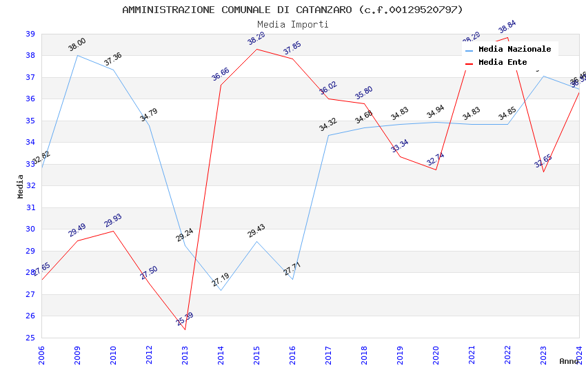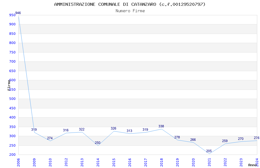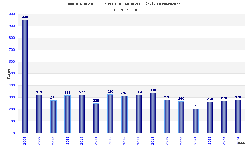 | Anno | Firme | Importi | Media | Naz. | Reg. | Prov. | Comu. |