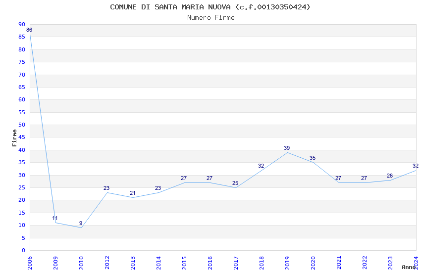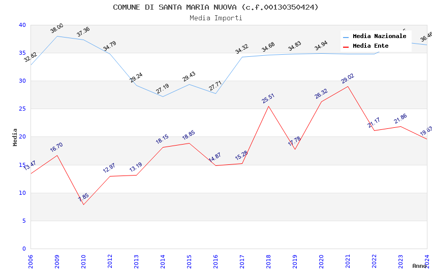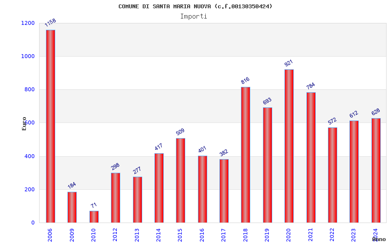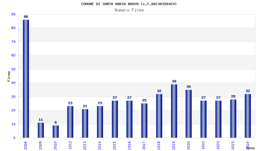 | Anno | Firme | Importi | Media | Naz. | Reg. | Prov. | Comu. |
