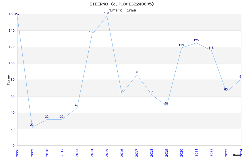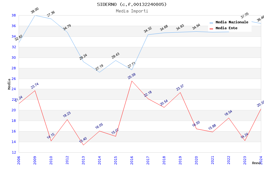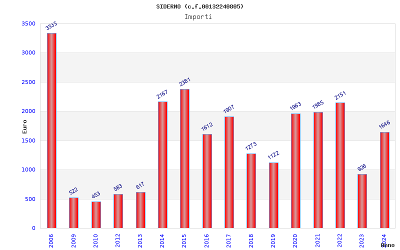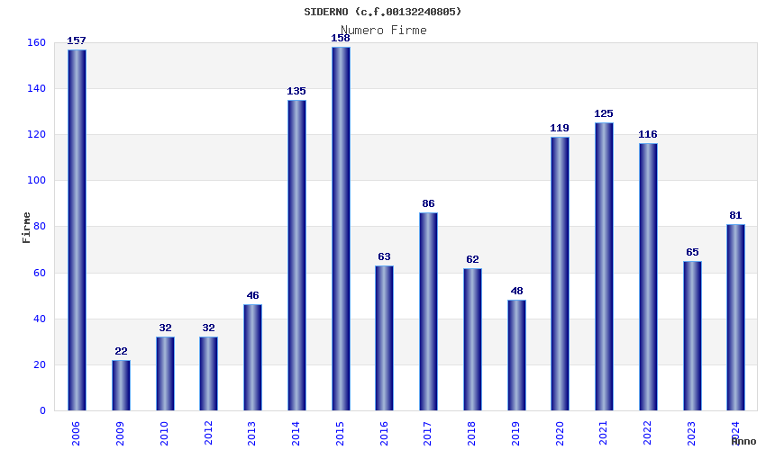 | Anno | Firme | Importi | Media | Naz. | Reg. | Prov. | Comu. |