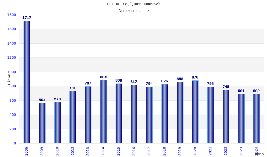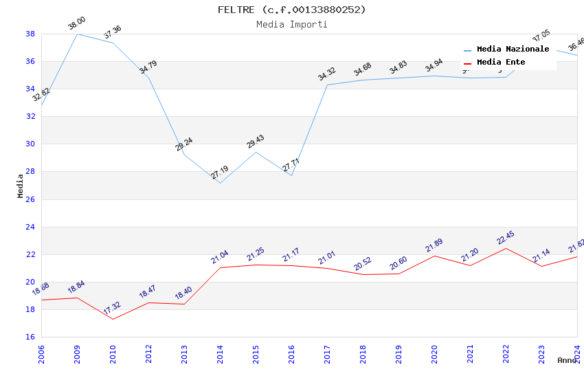 | Anno | Firme | Importi | Media | Naz. | Reg. | Prov. | Comu. |